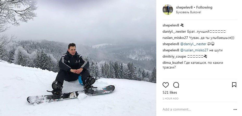 Полузащитник "Динамо" Владимир Шепелев отдыхает на горнолыжном курорте в Буковели. Об этом футболист сообщил в своем Instagram.
