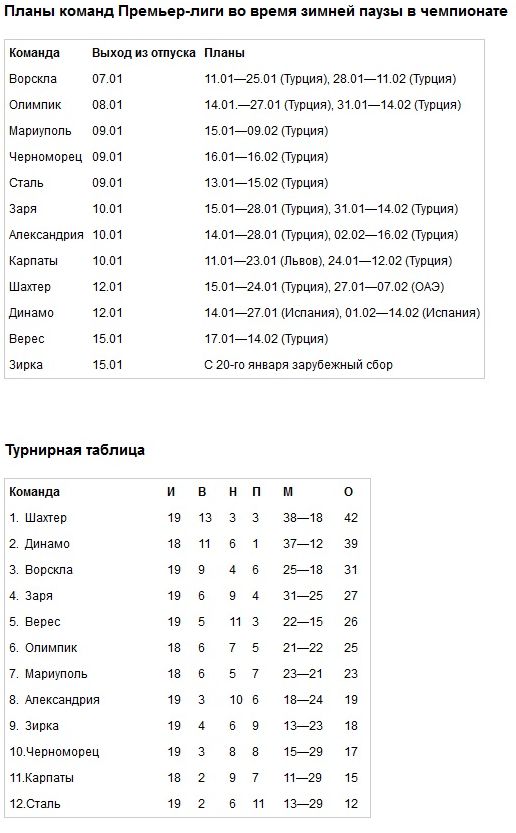 Главным местом подготовки к весенней части сезона у команд украинской Премьер-лиги, как и в прошлые годы, станет Турция. Практически все коллективы побывают зимой на побережье Средиземного моря.