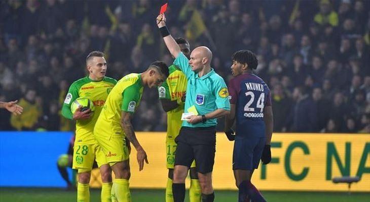 Арбитр ударил ногой футболиста "Нанта" и удалил его с поля