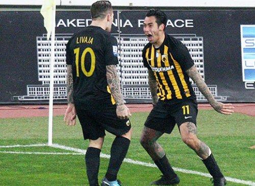 Недолгой была радость футболистов «Янины». Атаку АЕКа начал Чигринский, вынесший мяч подальше от своей штрафной, Шоджаеи выиграл борьбу в воздухе в пользу Ливаи, а тот в касание вывел Араухо на свидание с вратарем. Аргентинец, не позволив вмешаться в дело защитнику, легко и непринужденно сделал свое дело. Второй гол под занавес матча аргентинец забил головой, замкнув резаную подачу правого линейного Родригу Калу.