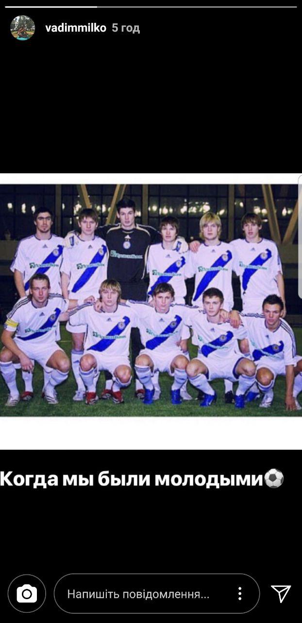 Экс-динамовец Вадим Милько, ныне выступающий за "Колос", в своем Instagram поделился командным фото киевлян, когда в их составе был молодой Денис Бойко, вернувшийся в стан "бело-синих".