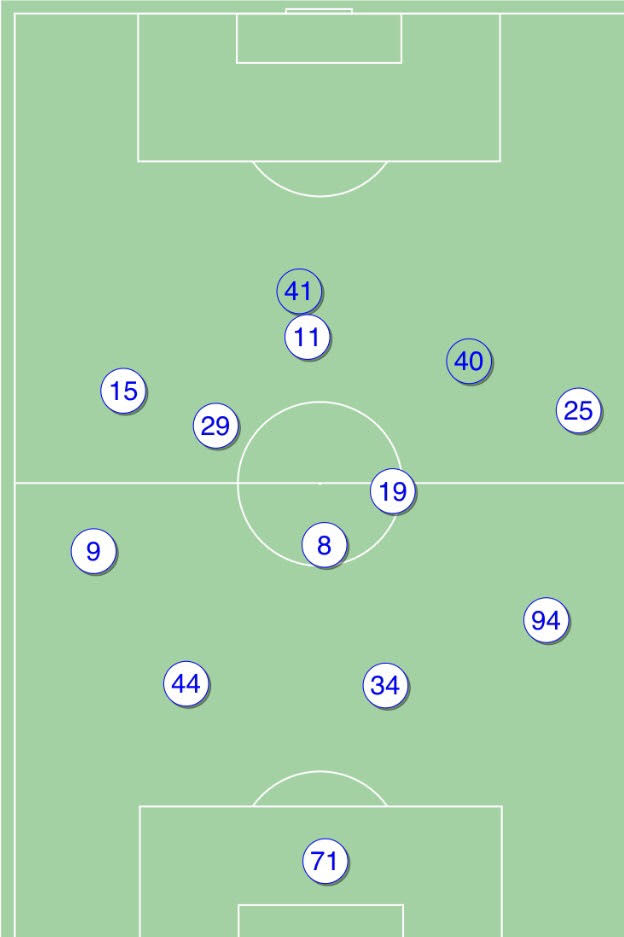 Усредненные позиции - это вообще жесть, треш и кровавые слезы. На кой делать такую ассиметрию со сдвоинными флангам, когда на левом фланге обороны играет такой горе-оборонец как Морозюк? Где, вашу мать, логика? Почему не сбалансировать оба фланга, ведь Дерлиз играл ОДИН весь матч? Идиотизм как он есть.