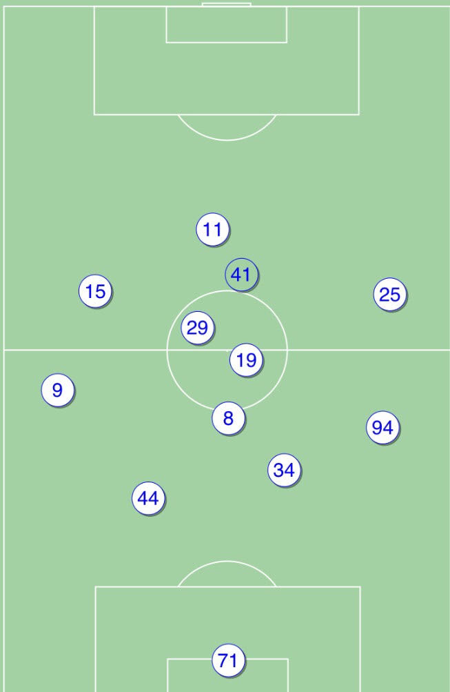 Усредненные позиции игроков Динамо в матче с АЕКом