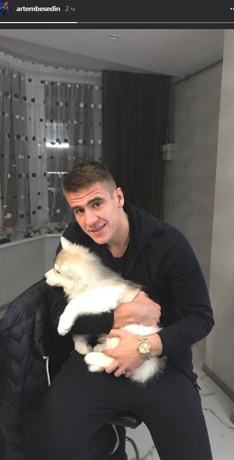 Форвард «Динамо» и сборной Украины Артем Беседин показал своего домашнего любимца. Фото со своей собачкой Артем выложил в Инстаграме.
