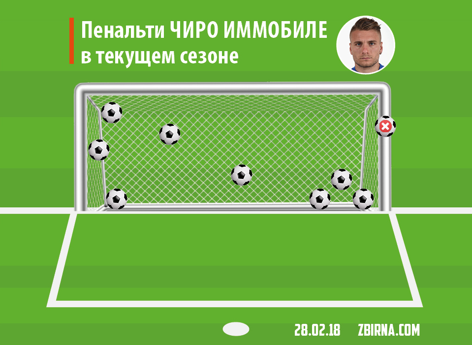 Иммобиле забивает голы на любой вкус, однако стандарты — не его конек. Но это если не считать пенальти. В этом компоненте форвард Лацио — тоже один из лучших в текущем сезоне. К точке нападающий подходил уже девять раз и реализовал восемь попыток. Бьет исключительно по углам, постоянно меняя направления ударов.