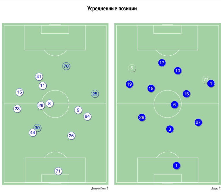Усредненные позиции игроков на поле