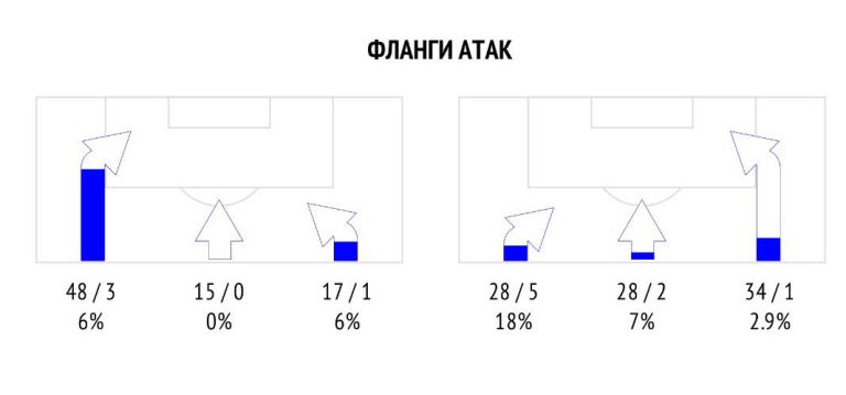 | Передачи в финальную треть поля | 125 | 216 |