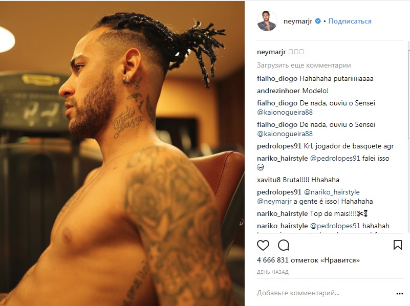 Нападающий «ПСЖ» Неймар сделал новую стрижку.