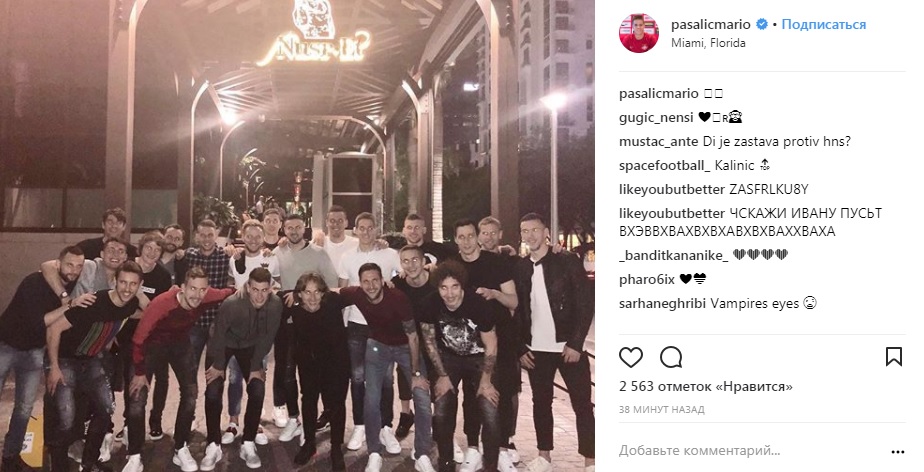 Полузащитник "Спартака" Марио Пашалич в Инстаграме опубликовал фотографию сборной Хорватии. Команда находится в Майами, где ей предстоит сыграть с Перу 24 марта.