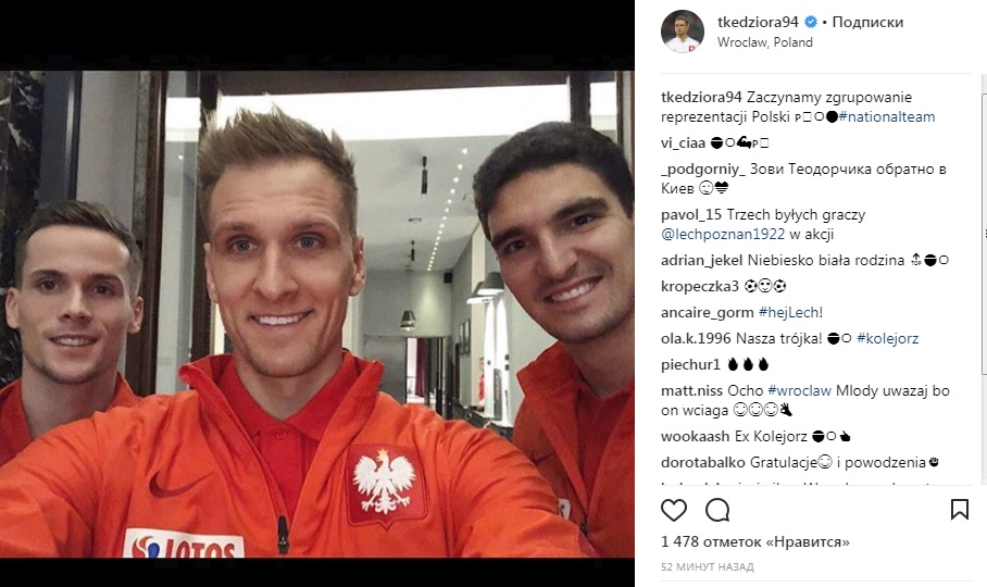 Защитник «Динамо» Томаш Кендзера прибыл в расположение сборной Польши, где встретился с экс-динамовцем Лукашем Теодорчиком, ныне выступающим за «Андерлехт».