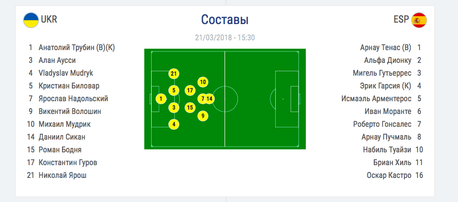 Первым соперником желто-синих станет испанская команда. Поединок начнется менее чем через час и уже стал известен стартовый состав Украины.