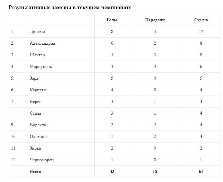 В текущем чемпионате футболисты, вышедшие на замену, забили 12% всех мячей, пишет zbirna.com. Пятая часть таких голов приходится на долю джокеров Динамо. В этом компоненте главный тренер киевлян Александр Хацкевич опережает всех своих коллег.