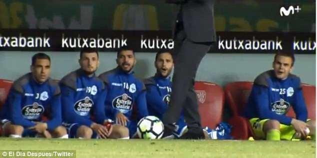 El banquillo del Deportivo flipando con el control de Seedorf.