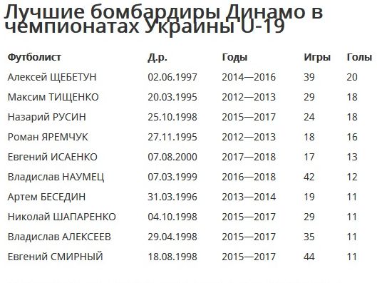 Всего голами за Динамо U-19 в чемпионате Украины отметились 80 футболистов. Еще шесть раз соперники забивали сами себе.