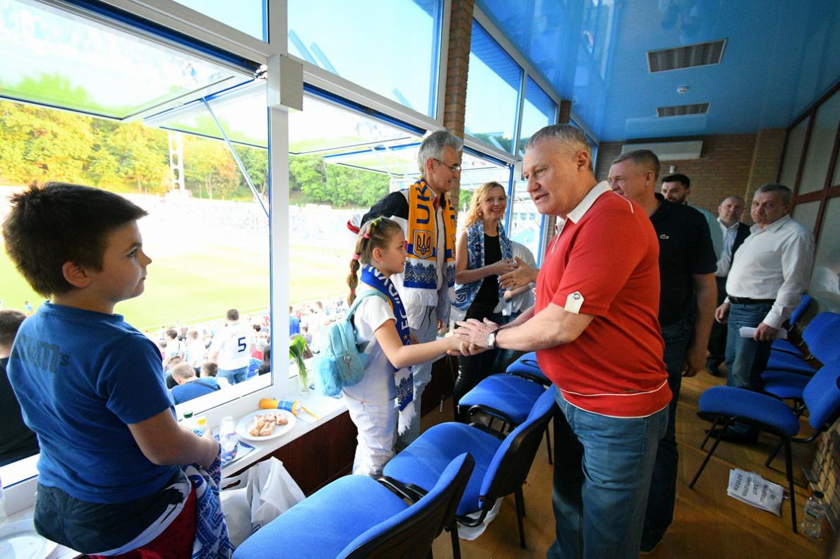 На стадионе гостям были предоставлены лучшие места на центральном секторе, а также в VIP-ложе. А в перерыве игры к ним зашли Григорий Суркис и Владимир Бессонов, чтобы поздравить детишек и пожелать приятного просмотра, а также поблагодарить специалистов Центра за их самоотверженный труд.