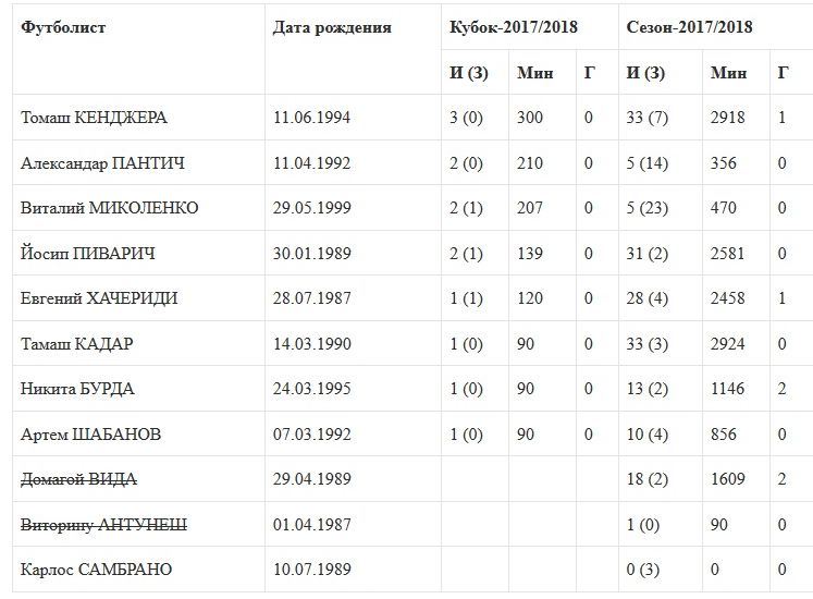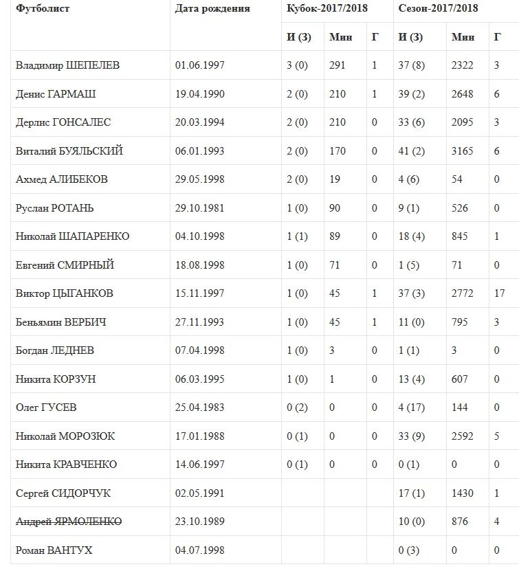Для Динамо игра 9 мая с Шахтером за Кубок Украины станет 48-й в сезоне-2017/2018. В предыдущих 47-ми под началом Александра Хацкевича сыграли 36 футболистов. Пятерых из них уже нет в заявке, еще на нескольких игроков тренерский штаб явно не рассчитывает. Костяк просматривается легко, хотя в розыгрыше Кубка Украины киевляне основу берегли. За редким исключением, что тоже хорошо видно в ниже приведенных списках по амплуа.
