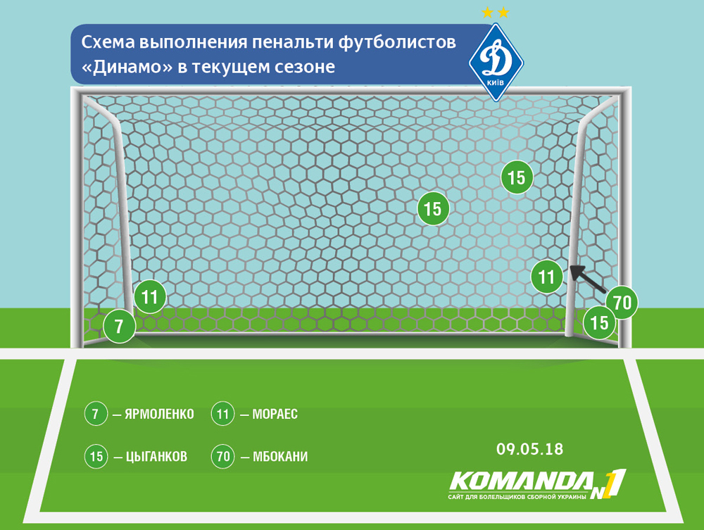 В общем, пенальтистом номер один в Динамо на данный момент является Виктор Цыганков, который в этом году трижды подходил к точке — и забил три мяча. Все — в правый от себя угол, но только один удар наносился низом. Три пенальти из трех за последние четыре года реализовал Йосип Пиварич, а вот Беньямин Вербич к точке подходил пять раз, но забил только дважды. У остальных футболистов было не так много попыток, чтобы детально их оценивать.