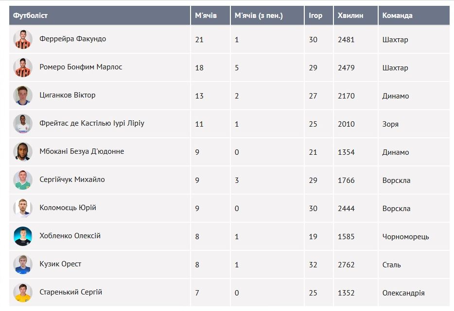 Отметим, что в первую пятерку вошли два динамовца - Виктор Цыганков (13 голов) и Дьемерси Мбокани (9 голов).