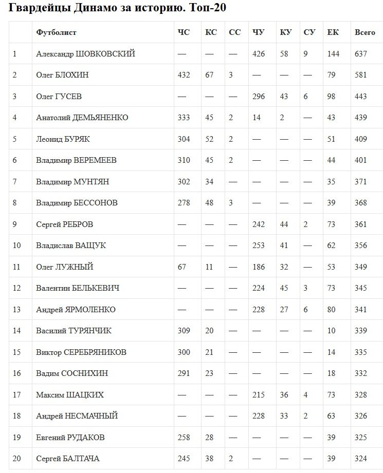 Господин Кудырко смешивать вместе статистические данные разных стран пусть даже с участием Динамо Киев по меньшей степени безкультурно. Это разные чемпионаты по значимости по уровню по названию. Ну никак не тянет первенство Украины до союзного уровня . Наверное правильно давать перечень гвардейцев Динамо союзного периода отдельно, а 20 Динамовцев сыгравших в независимый период отдельно. И ещё уровень чемпионата и кубка тем более суперкубка по весомости как небо и земля. Считать надо только первенство. Так будет правильно.