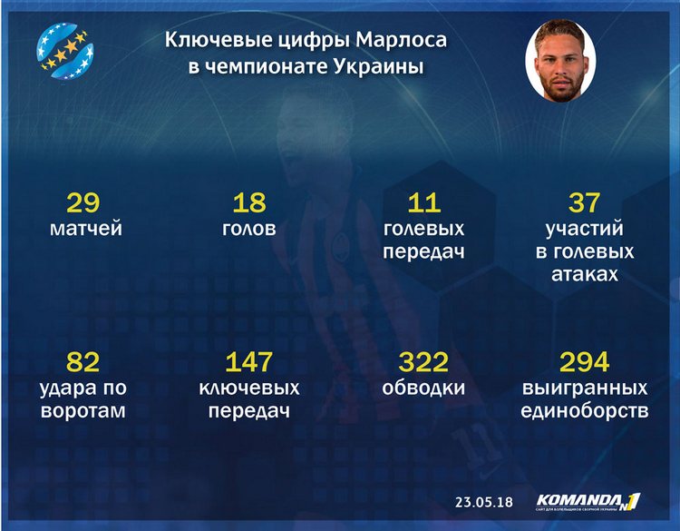 По меркам чемпионата Украины это космический футболист. В атаке он делает все — обыгрывает, отдает, забивает. Полузащитник Шахтера и сборной Украины Марлос стал лучшим игроком чемпионата по оценкам эффективности ТТД, а в десятку лучших исполнителей УПЛ вошли еще семь его одноклубников.