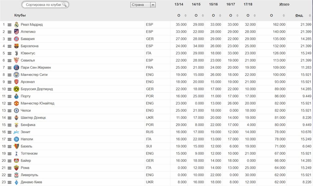 В обновленном рейтинге УЕФА, Шахтер занимает 14 место, а Динамо расположилось на 23 месте. На первой строчке мадридский Реал, который недавно выиграл Лигу чемпионов. На втором месте Атлетико, а замыкает тройку — Барселона.