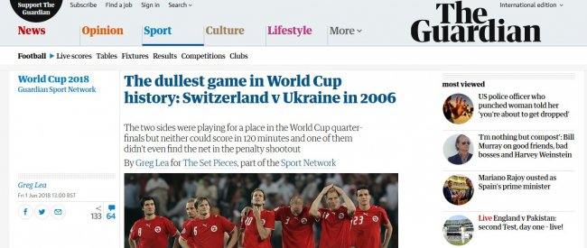 The Guardian считает поединок Украина – Швейцария самым скучным в истории чемпионатов мира