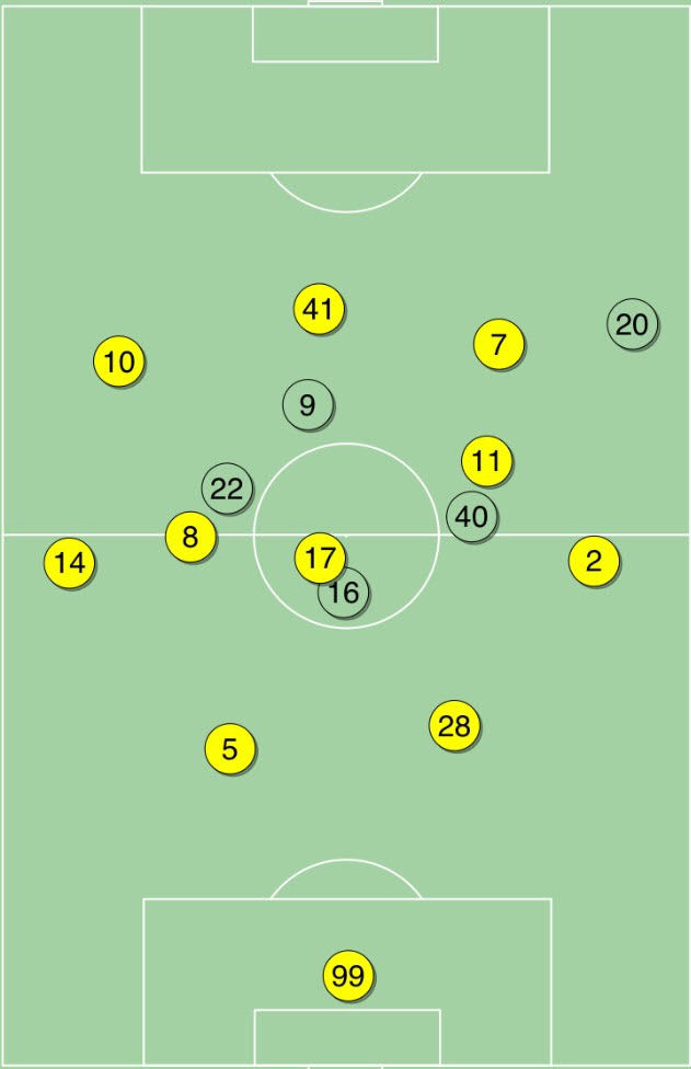 Такой прогресс в организации атаки можно связывать не только с уровнем сопротивления соперника, но и с игрой Александра Зинченко на месте опорного полузащитника. Безусловно, у нашего универсального английского легионера хватало ошибок (лидер по числу потерь на своей половине поля), но в кои-то веки средняя линия сине-желтых показала хороший комбинационный футбол, в котором короткий пас чередовался с быстрой сменой флангов и приникающими передачами в атаку, которые равномерно распределялись по всему фронту.