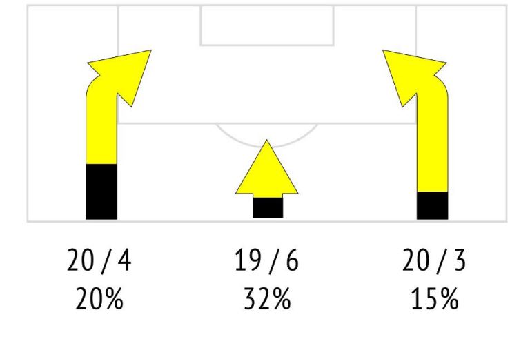 | Вход в штрафную площадь | 20% | 12% | 9% | 23% |