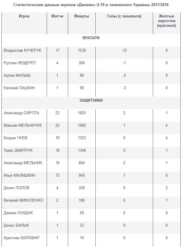 Подводим статистические итоги сезона 2017/2018 в чемпионате U-19 для киевского «Динамо», по итогам которого «бело-синие» стали сильнейшими в третий раз подряд.