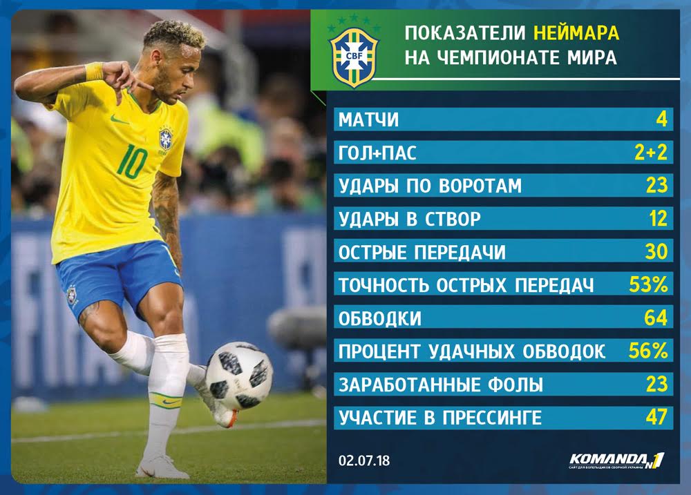 Большой плюс нынешней сборной Бразилии заключается в том, что в ее составе собраны такие футболисты, которые идут в обводку 51 раз, а в отбор мяча вступают 52 раза. Там все носят рояль — даже нападающий Габриэл Жезус совершает за игру до 10-ти (!) оборонительных единоборств, а лидером команды по количеству участий в прессинге является Неймар, который на этом рояле, собственно, лучше всех и играет. Порой переигрывает с помощью своих симуляций, но у этого оркестра, кажется, совсем неплохой дирижер. Ноты он выбирает правильные. На данный момент сборная Бразилии не только уверенно смотрится по игре, но и лидирует на турнире по проценту выигранных единоборств.