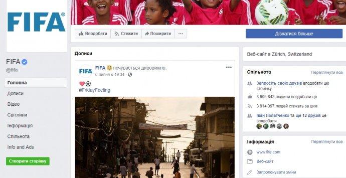 ФИФА скрыла рейтинг страницы на Facebook после обвала его украинцами