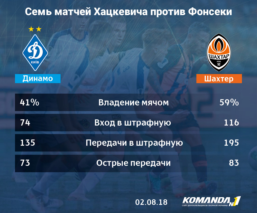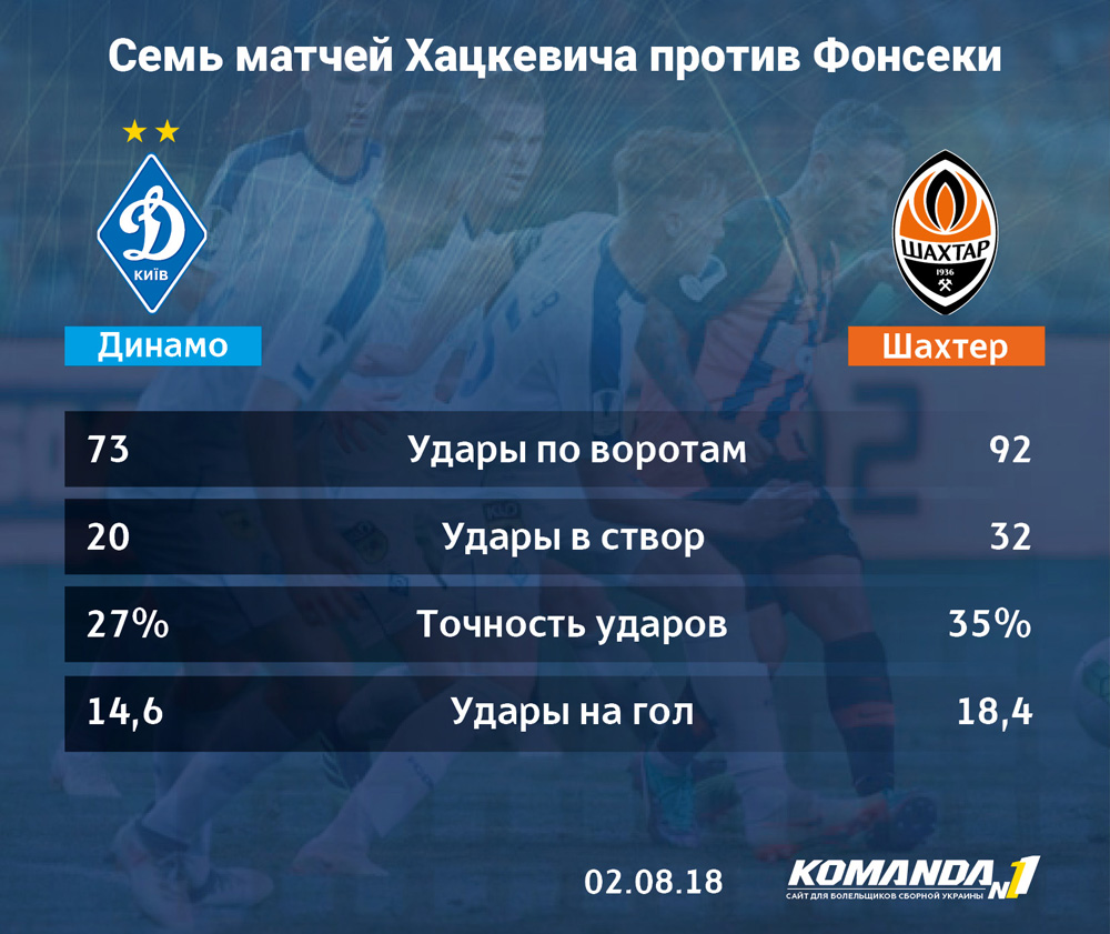 В последнее время матчи Динамо и Шахтера проходят, словно под копирку, пишет zbirna.com. Горняки много и разнообразно атакуют, а киевляне компактно обороняются и ловят свой шанс на контратаках. Команда Паулу Фонсеки создает больше голевых моментов, но подопечные Александра Хацкевича лучше их реализовывают. Эффективность ударов по воротам это подтверждает. Да и в острых передачах, особенно если сравнить общее время работы с мячом, у Шахтера нет большого преимущества.