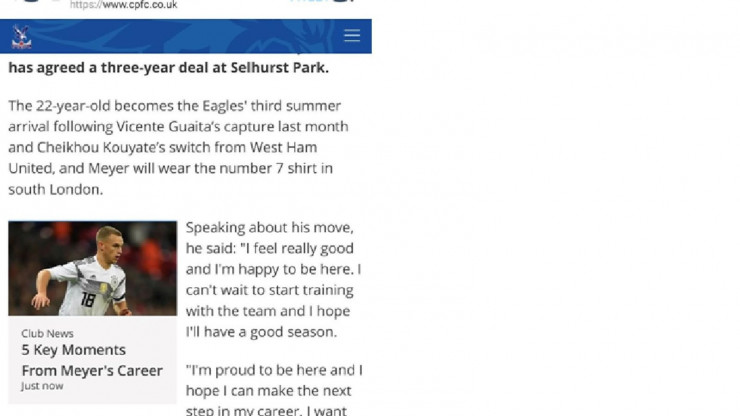 Пресс-служба «Кристал Пэлас» допустила ошибку в новости о представлении новичка команды Макса Майера.