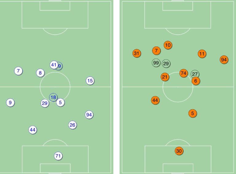 Усредненные позиции футболистов в матче Динамо — Шахтер