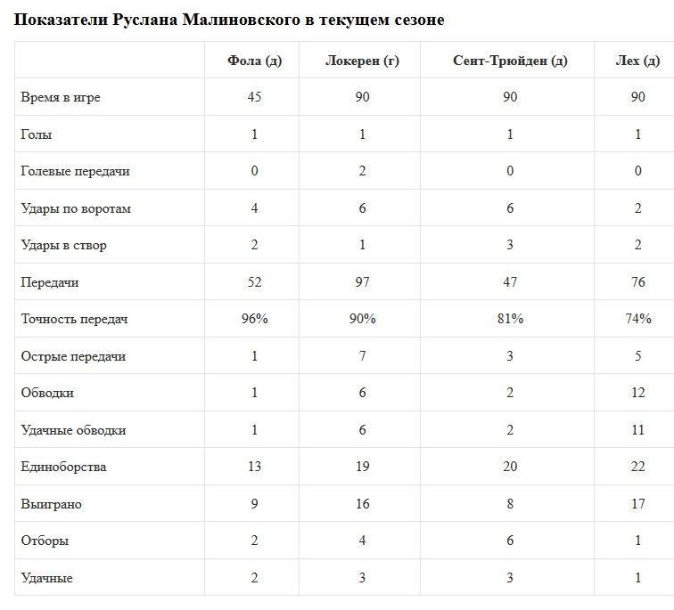 Полузащитник сборной Украины Руслан Малиновский не уходит с поля без забитого мяча во всех четырех матчах текущего сезона, но поединок третьего квалификационного раунда Лиги Европы стал для него особенным. Дело в том, что украинский футболист отличился результативным ударом из пределов штрафной площади, а такое с ним случилось лишь во второй (!) раз за все время выступления в бельгийском Генке. Во встрече с польским Лехом воспитанник Шахтера снова был одним из лучших в составе своей команды — рейтинг полезности его игры, InStat Index, составил 321 балл. А средний показатель в текущем сезоне — 350!
