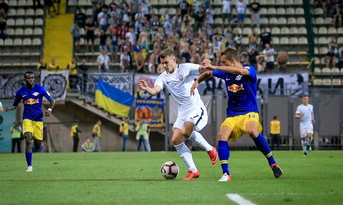 "Заря" забивает на 35-й минуте. Мячом в ворота "Лейпцига" отметился Рафаэль Ратао.