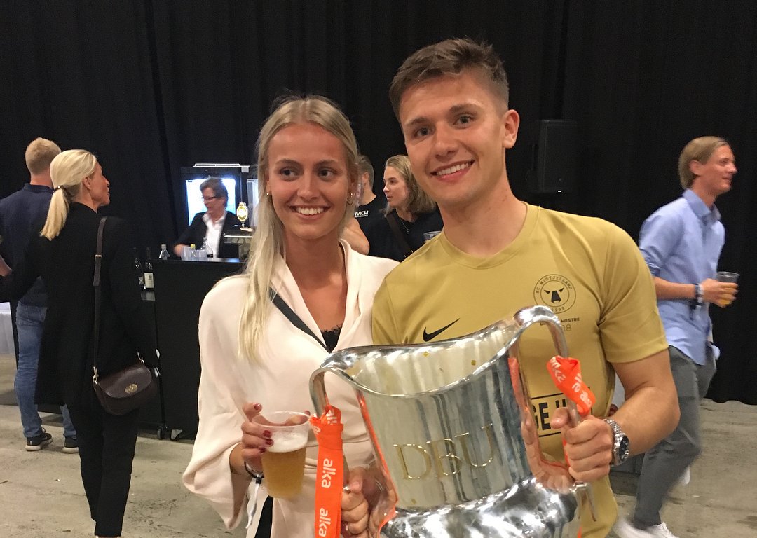 Знакомьтесь, девушка первого скандинава в истории киевского Динамо. Миккел Дуэлунн вдохновляется на футбольные подвиги в компании Нанны Херманнсен. Оба мегапозитивные.