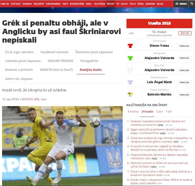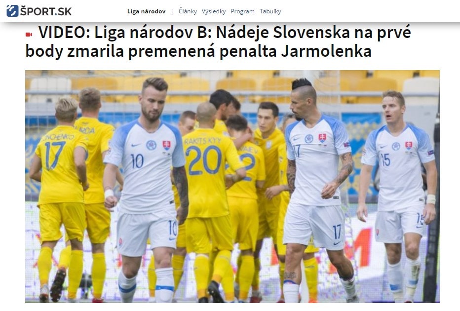 Сборная Словакии проиграла Украине в своем стартовом поединке в Лиге наций. Единственный гол в матче с пенальти забил Андрей Ярмоленко. Назначение этого одиннадцатиметрового стало главной темой обсуждения встречи в словацкой прессе.