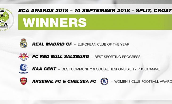 "Реал" признан лучшим клубом 2018 года по версии Ассоциации европейских клубов (ECA).