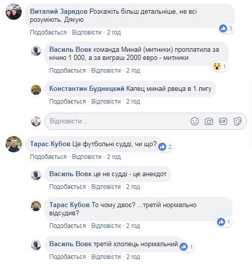- Команда "Минай" проплатила за нічию 1 000, а за виграш 2000 євро, - відповів Вовк.