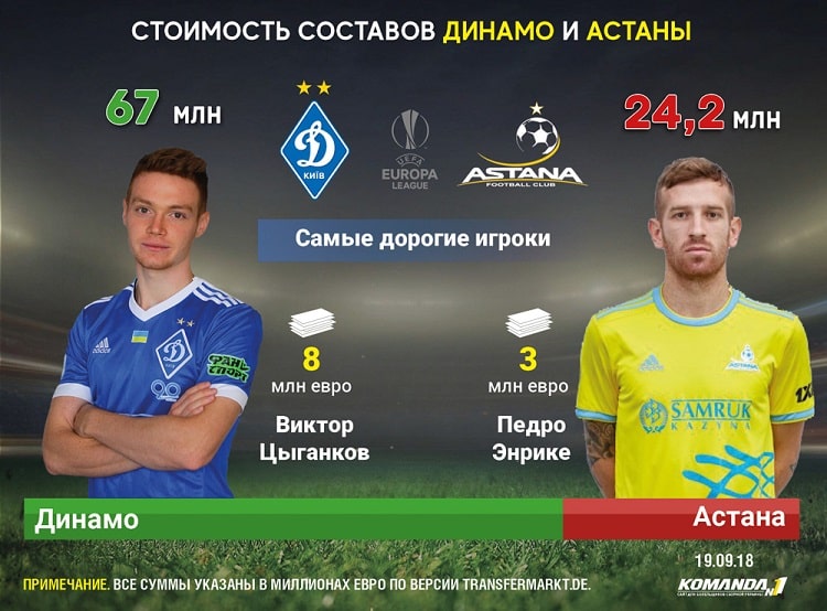 Перед сегодняшним стартовым матчем группового раунда Лиги Европы Динамо — Астана мы сравнили стоимость составов соперников