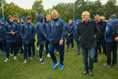 Присутні стали свідками відкритого тренування вихованців 2005 та 2006 років народження, а потім разом з ними вирушили до нещодавно відреставрованого легендарного корпусу, побудованому понад 70 років тому, в якому свого часу кімнати ділила низка великих футболістів біло-синіх.