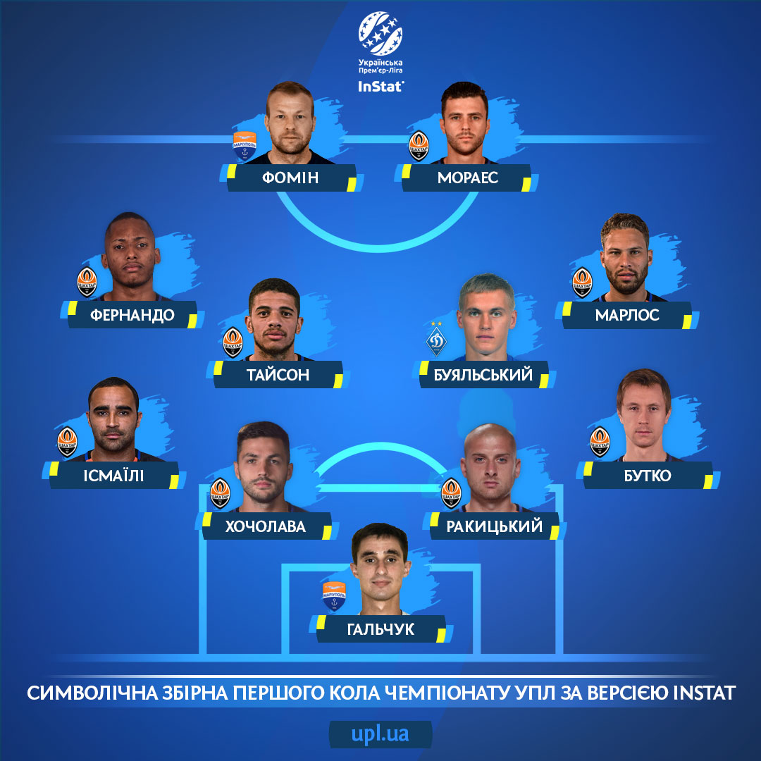 На основі оцінок InStat ми склали символічну збірну найкращих футболістів першого кола Чемпіонату УПЛ. Нагадаємо, що серед маси цифр цієї системи є списки топ-гравців за амплуа. Футболісти, які очолюють відповідні реєстри, входять у віртуальну 11-ку.