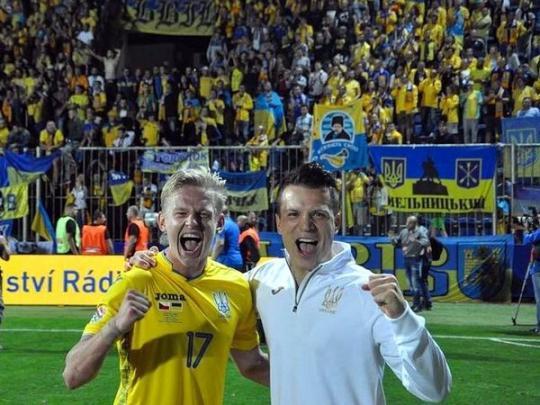 Игроки сборной Украины Александр Караваев и Евгений Коноплянка сыграли в текбол против своих партнеров по национальной команде Александром Зинченко и Русланом Малиновским.