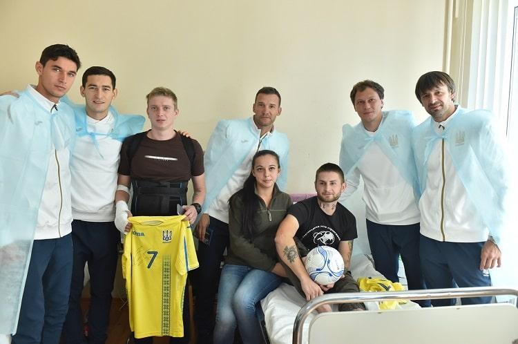 Головний тренер Андрій Шевченко, його асистент Олександр Шовковський, капітан Андрій П'ятов, гравці Тарас Степаненко та Роман Яремчук провідали воїнів у палатах, побажавши їм швидшого одужання, щоби найближчим часом прийти підтримати збірну на стадіон, і, звичайно, привітавши зі Святом Покрови. До слова, Андрій Шевченко передав до шпиталю 50 квитків на матч Україна — Чехія, відтак пацієнти, в яких є фізична можливість прийти на арену, підтримають синьо-жовтих уже в найближчому матчі 16 жовтня. Також збірники привезли з собою інші подарунки — футболки національної команди, м'ячі з автографами наших футболістів, сувенірну атрибутику.