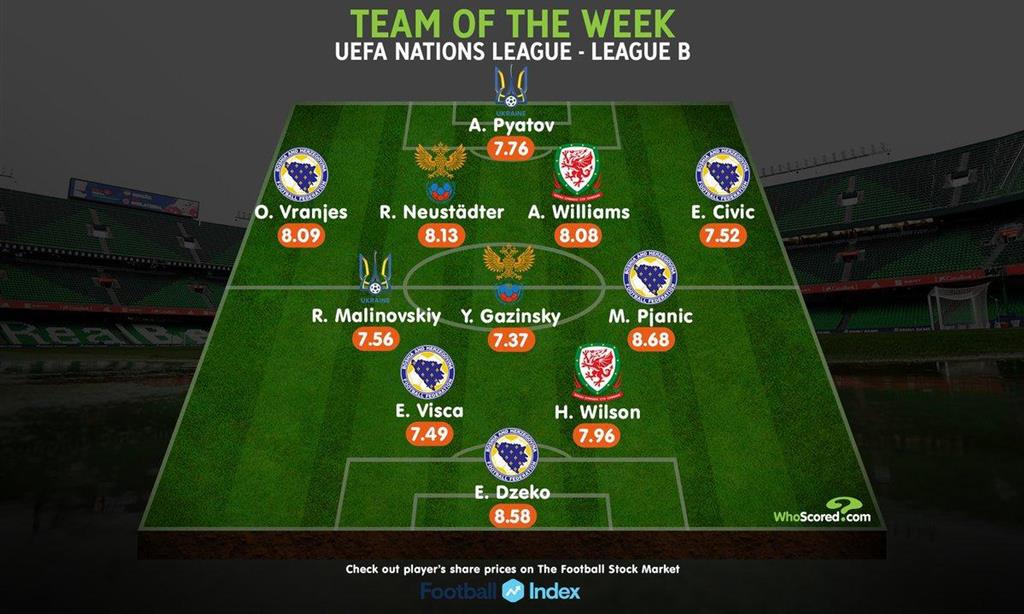Два футболиста сборной Украины попали в сборную тура от WhoScored
