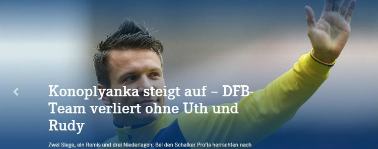 Немного скромнее (по объему), выступили работники официального сайта Шальке, за который выступает Евгений Коноплянка. Впрочем, и они сообщили, и о победном голе Руслана Малиновского, и о досрочном триумфе нашей команды в своей группе ЛН.