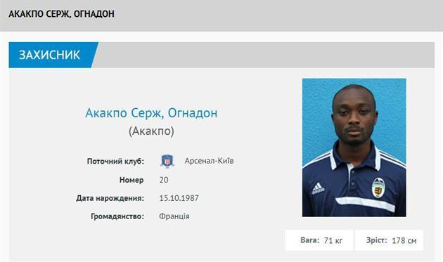 Арсенал-Киев внес в заявку на сезон экс-защитника Говерлы Сержа Огнадона Акакпо.