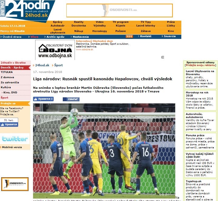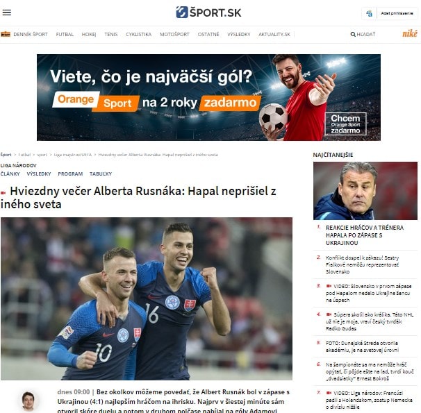 «Хитом вечера, безусловно, стал гол пяткой Адама Зреляка на 52-й минуте. Отметим, что передачу ему сделал Альберт Руснак, который положил начало победному шествию Словакии и спустил с цепи подопечных Павела Гапала. Прекрасный результат и отличная созидательная работа всей команды. Игровая философия Павела Гапала, которую он старался привить молодежной сборной, торжествует и в главной команде страны», — не сдерживает эмоций таблоид.