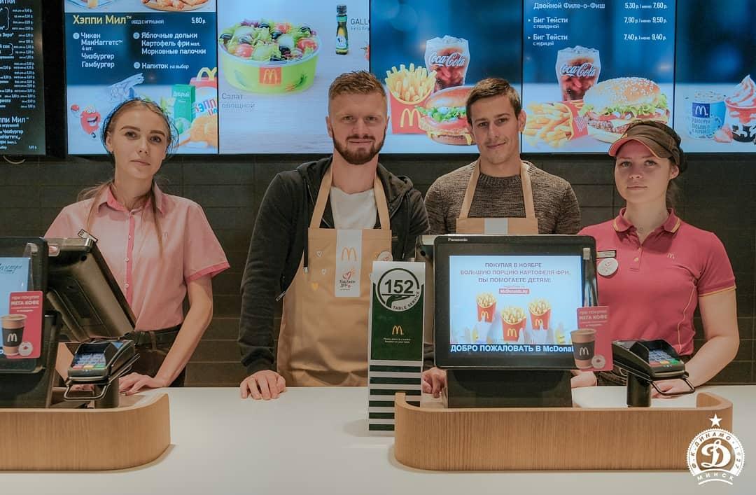 "Свободная касса!". Динамовец попробовал себя в роли работника "Макдональдса"